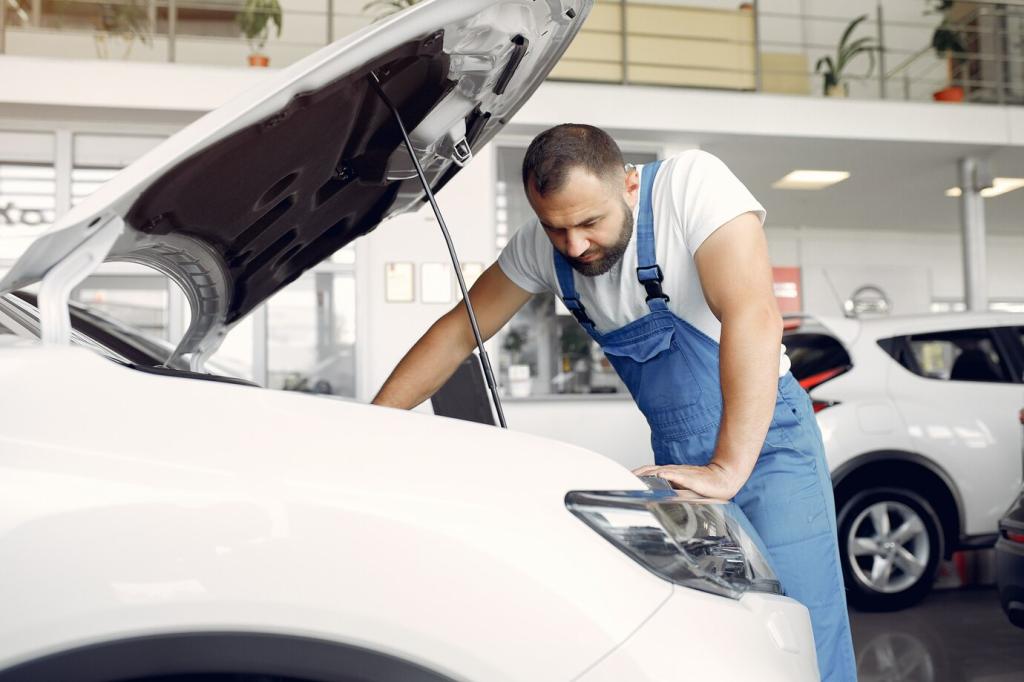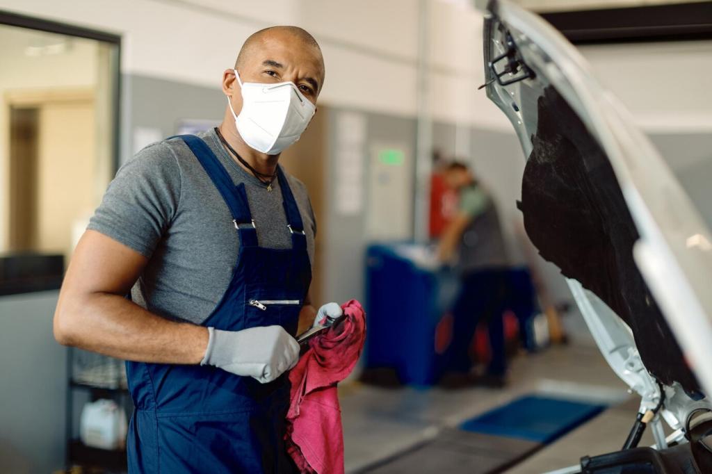 Vor dem ersten Frost eine widerstandsfähige Versiegelung auftragen, Dichtungen mit Pflegestift behandeln und Fußmatten regelmäßig trocknen. Unterboden und Radkästen gründlich spülen. Schreiben Sie, welche Schutzprodukte Ihnen durch schneereiche Wochen geholfen haben, ohne nachzulassen.